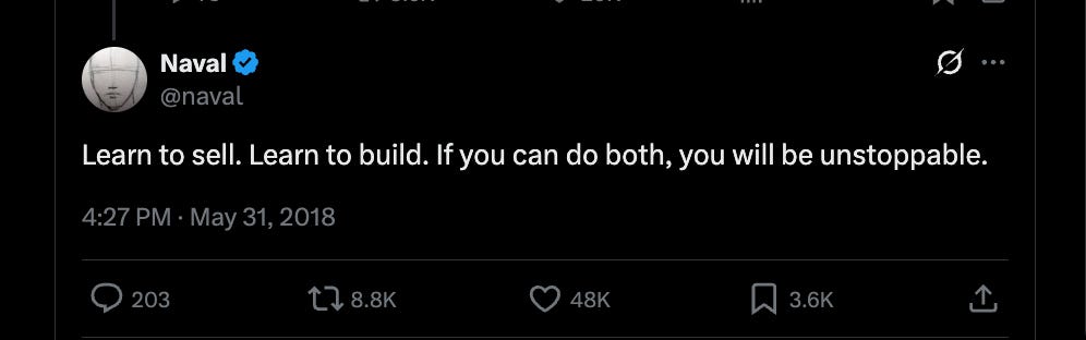 First, I’ve always agreed with Naval that the two most valuable skills in any career are building products and selling. Everything meaningful flows downstream from those two capabilities. In my previous role, I had already done a fair amount of selling and even wrote about what that experience taught me. So product became the natural next frontier.